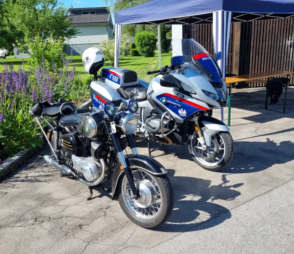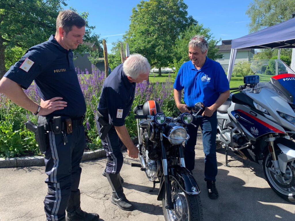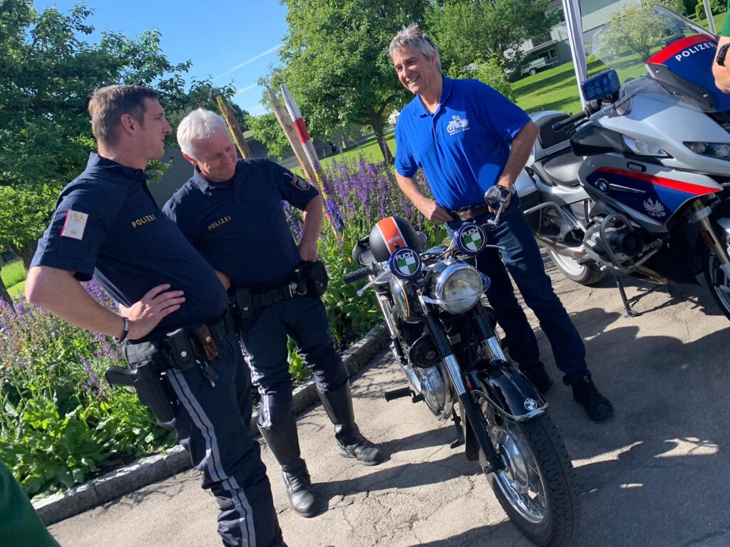 Gendarmerie Puch 250 SGS zu ihnen und man sah was sich die letzten 70 Jahre an der Technik veränderte. Dies stieß auf großes Interesse bei vielen Motorradfahrern und Besuchern.