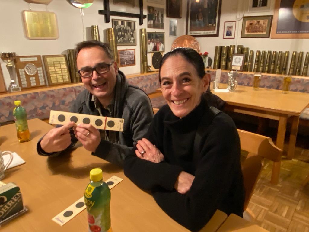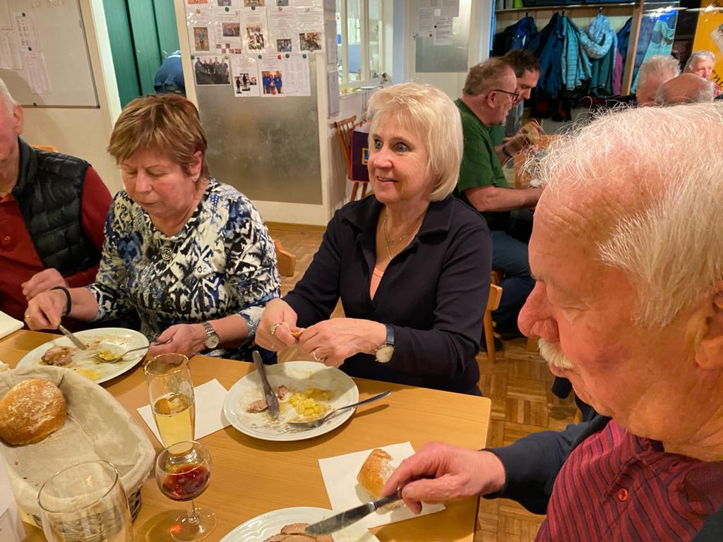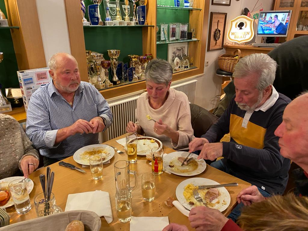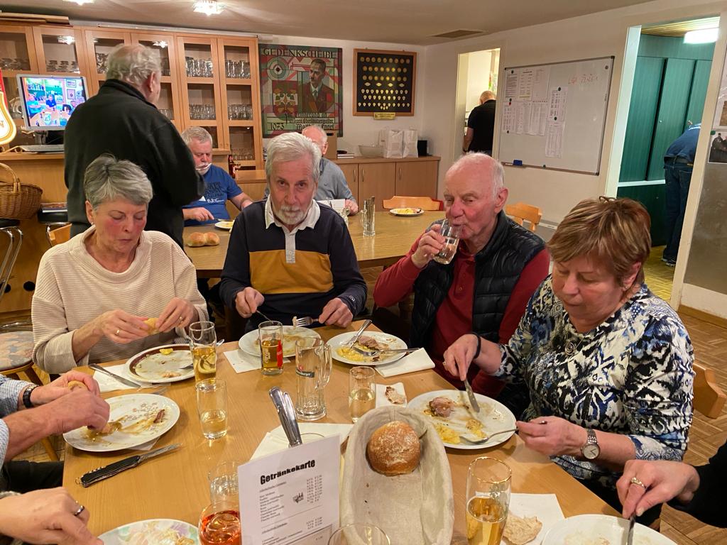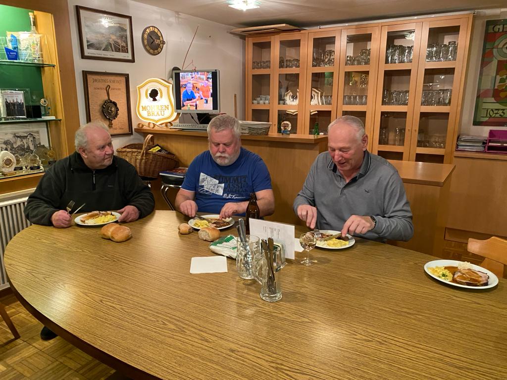 Und da man bekanntlich nur mit Zielwasser und einer guten Unterlage in die Mitte trifft wurden wir kulinarisch von Otto und Maria Krainer mit Schweinsbraten und Kartoffelsalat verwöhnt.
