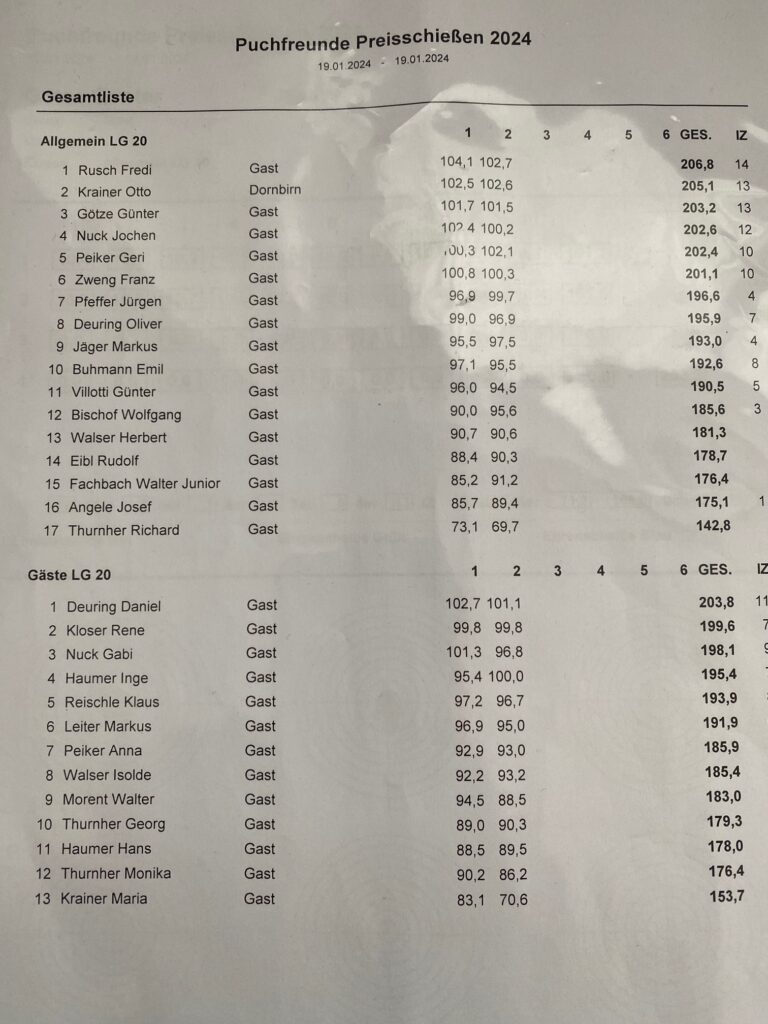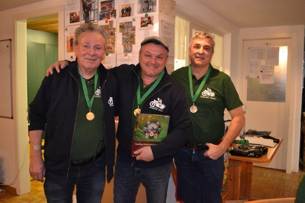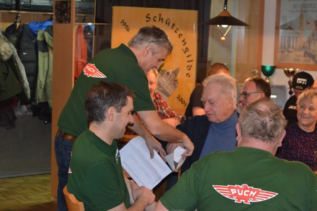 Um in der Motorradfreien Zeit für etwas Abwechslung zu sorgen, veranstalteten die Puchfreunde Bregenz am 19. Jänner ihr 2. Preisschießen. Denn ein geschultes Auge ist nicht nur beim Motorrad fahren erforderlich, sondern auch beim Luftgewehr schießen. Durchgeführt wurde die Veranstaltung von der Schützengilde Dornbirn. Es kamen 36 Freunde mit Bekannten um ihre Zielgenauigkeit unter Beweis zu stellen. Auch wenn es keiner zugeben will, irgendwie wollte jeder ganz vorne mitmischen. Das beste Puchauge hatte Fredi Rusch vor Otto Krainer und Günter Götze. Bei den Gästen trafen Daniel Deuring vor Rene Kloser und Gaby Nuck ins Schwarze. Für die Besten gab es Medaillen sowie für alle Teilnehmer kleine Sachpreise. Pech hatte leider der ehrgeizigste
