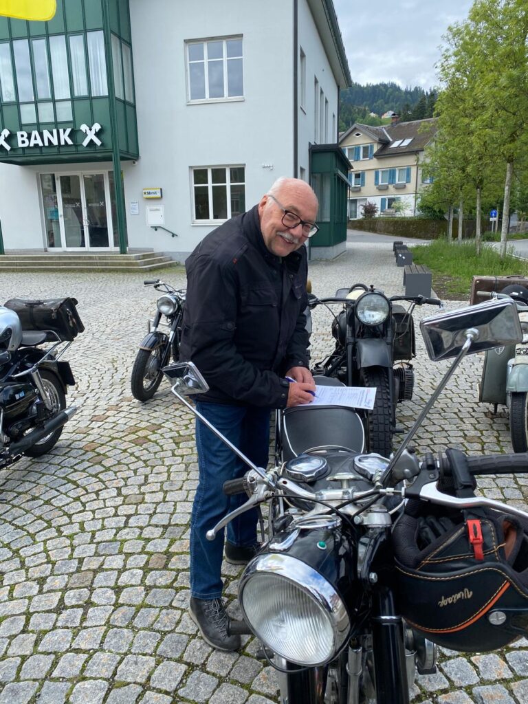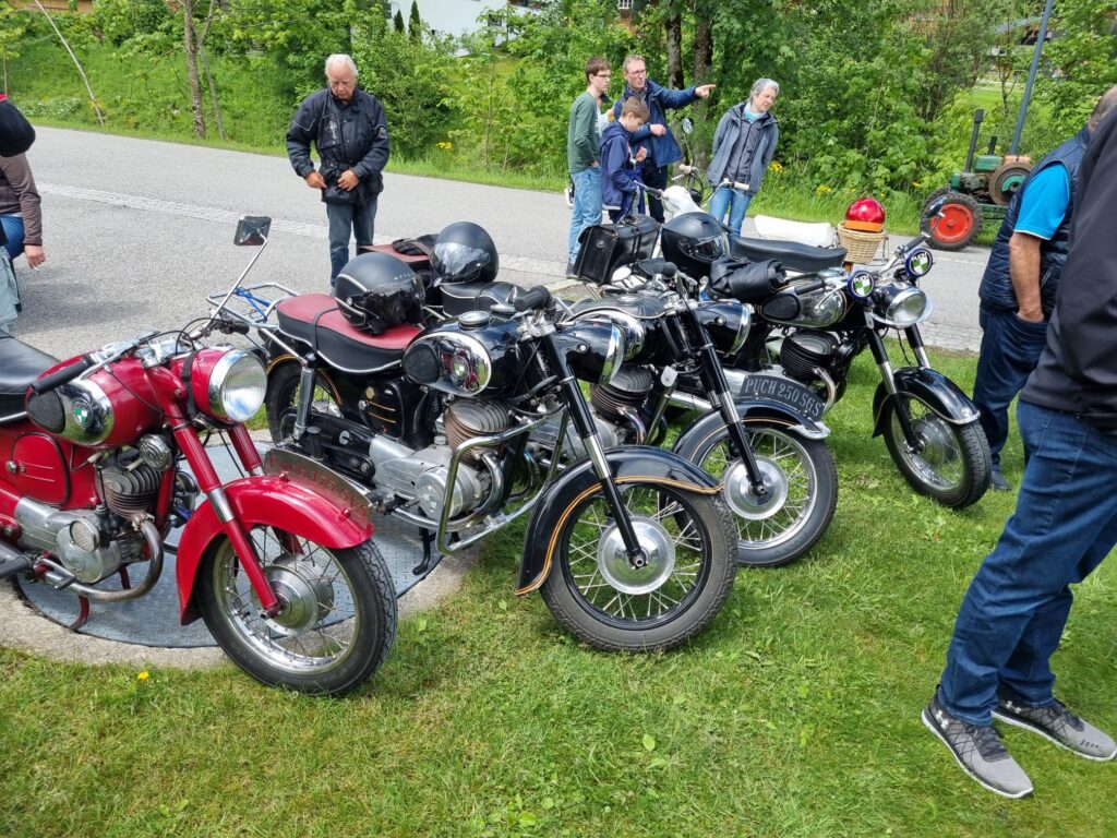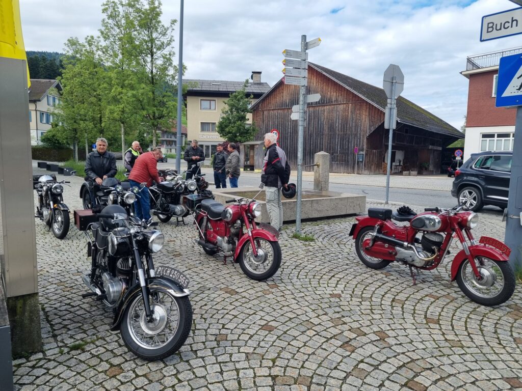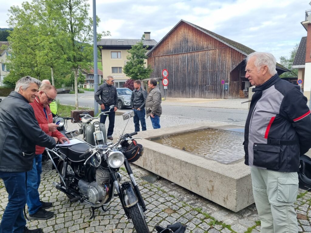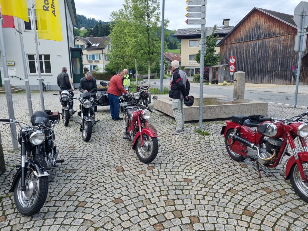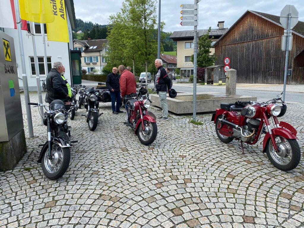 Am Samstag, den 25. Mai trafen wir uns um 9:30 Uhr am Dorfplatz in Alberschwende. Trotz bewölktem Himmel fanden sich 9 Puchfreunde ein, zur gemeinsamen Fahrt in den Bregenzerwald.