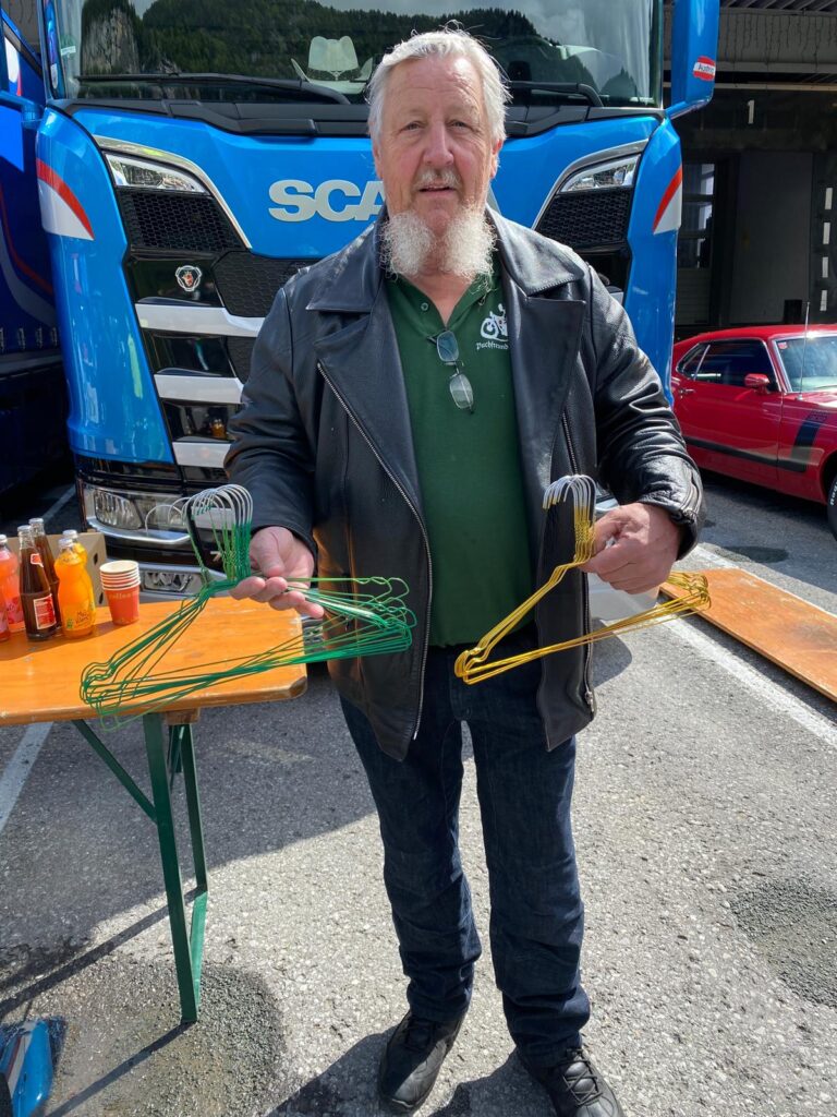 Anschließend ging die Fahrt weiter in Richtung Mellau, wo beim Feuerwehrhaus bereits aufgetischt war und wir unseren Gutschein in flüssige bzw. feste Nahrung eintauschen konnten. Allmählich trafen die alten LKW’s usw. am Festplatz ein. Nach einer Besichtigung der auf dem Platz ausgestellten Fahrzeuge, zogen am Himmel dunkle Wolken heran. Das veranlasste uns nach dem Mittag die Heimreise bei trockenem Wetter anzutreten.