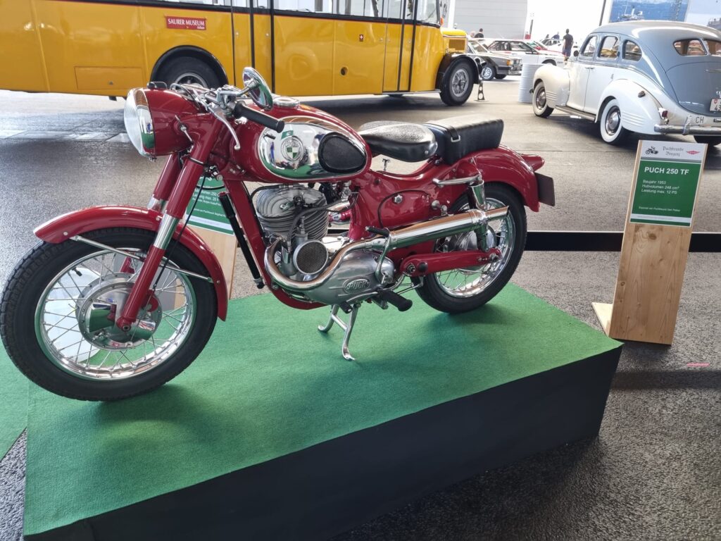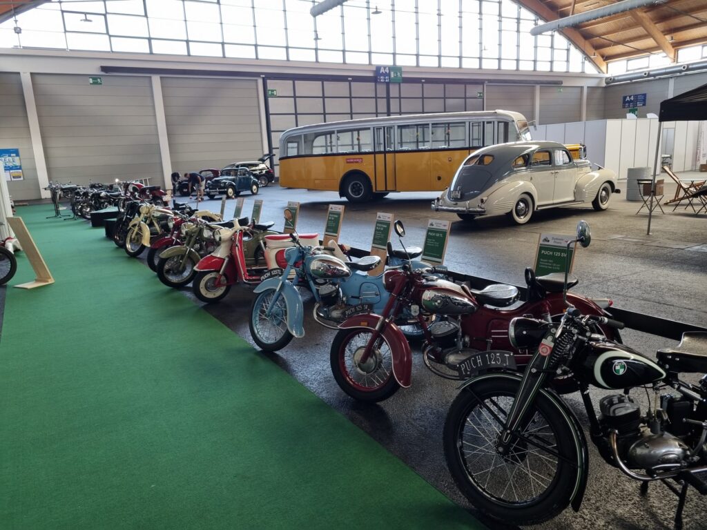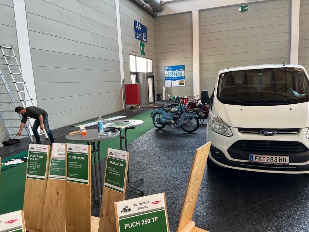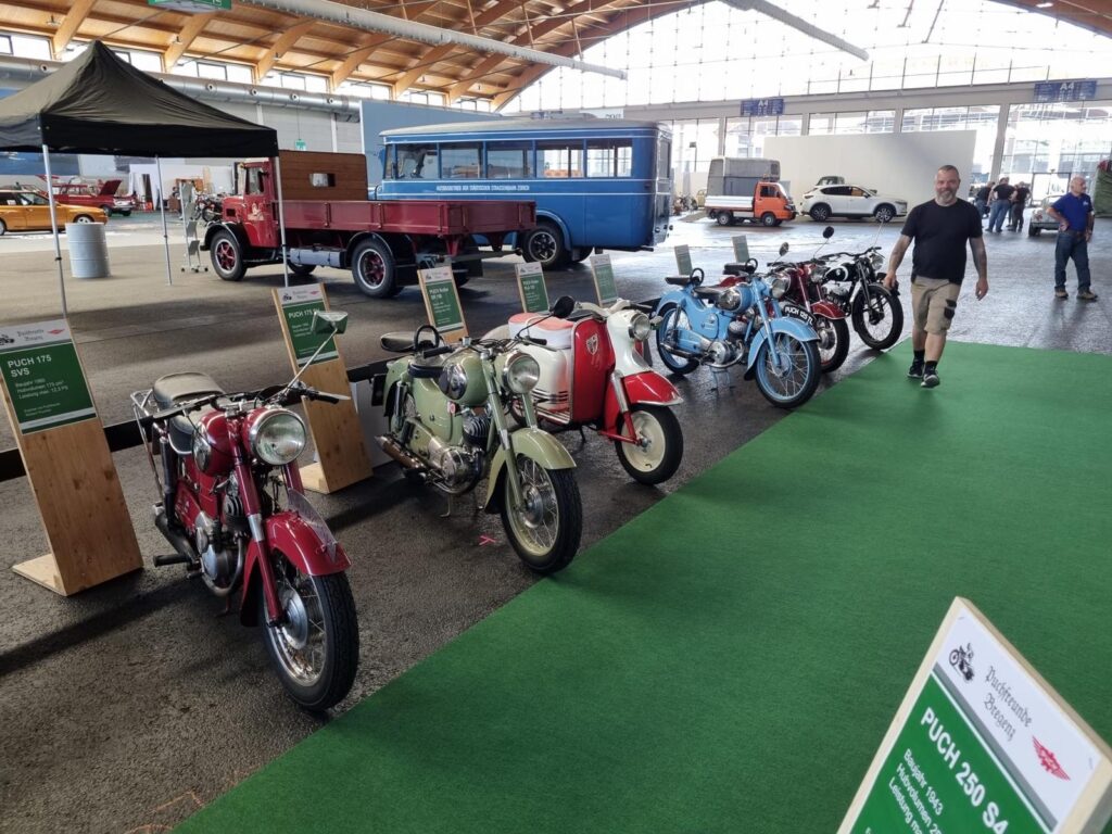 Während der dreitägigen Messe präsentierten die Puchfreunde aus Vorarlberg mit Stolz, 33 unterschiedliche alte österreichische Motorräder der Marke Puch vom Baujahr 1920 bis 1960 auf der Klassikwelt Bodensee in Friedrichshafen.