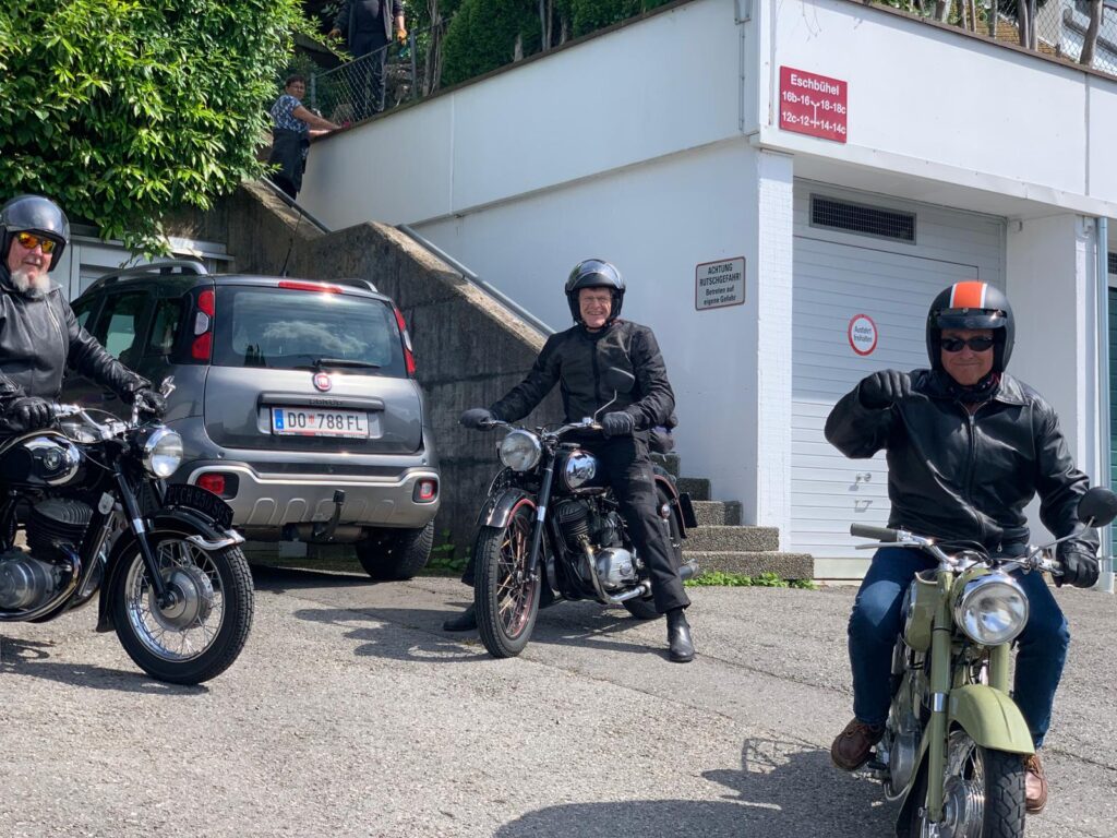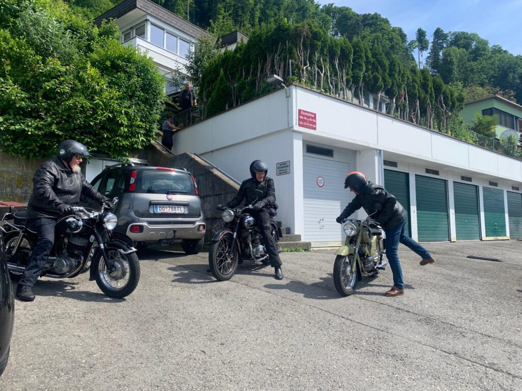 Am Samstag, den 24. Mai, bei strahlenden 7° Celsius – also genau die richtige Temperatur, um die Motoren warm zu laufen – versammelten sich neun begeisterte Puchfreunde zu einer frischen Ausfahrt. Ziel war Mellau, wo das alljährliche von Toni Wüstner organsierte Oldtimertreffen lockte. Doch vorher stand noch ein Zwischenstopp beim legendären Käsekeller in Lingenau auf dem Programm – denn was wäre eine Puchfahrt ohne eine ordentliche Portion Käse und gute Laune?