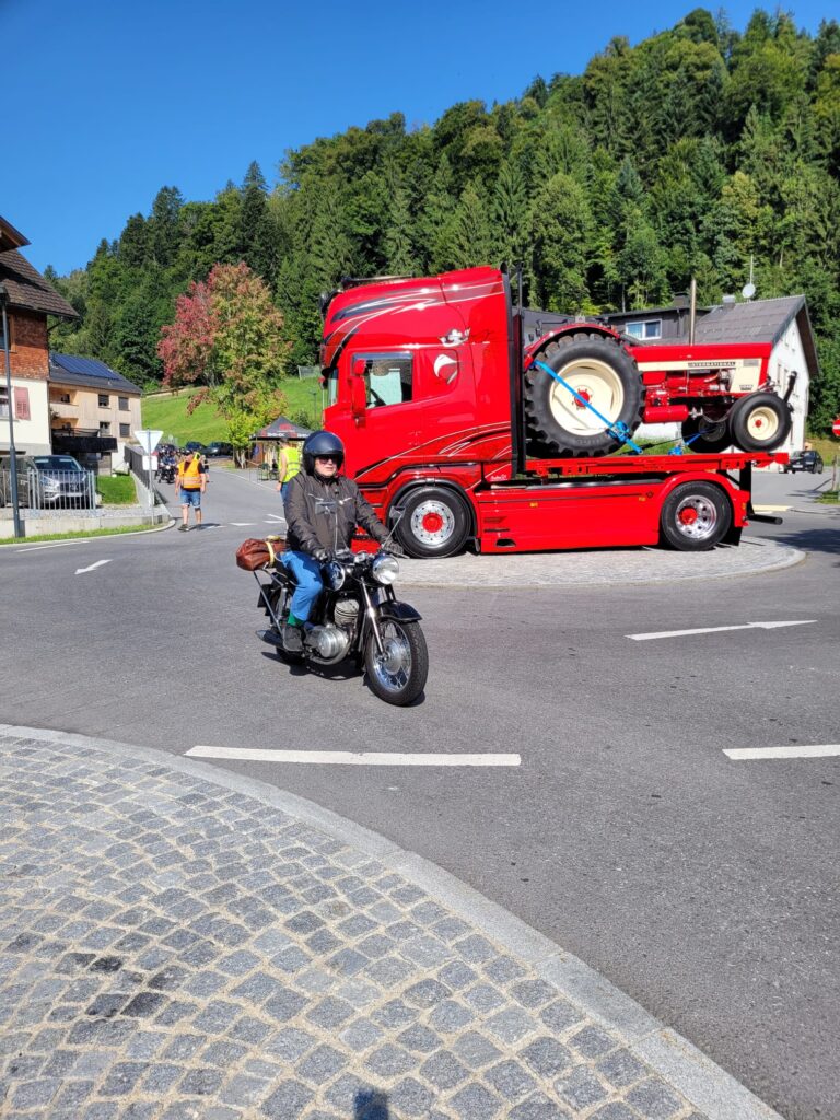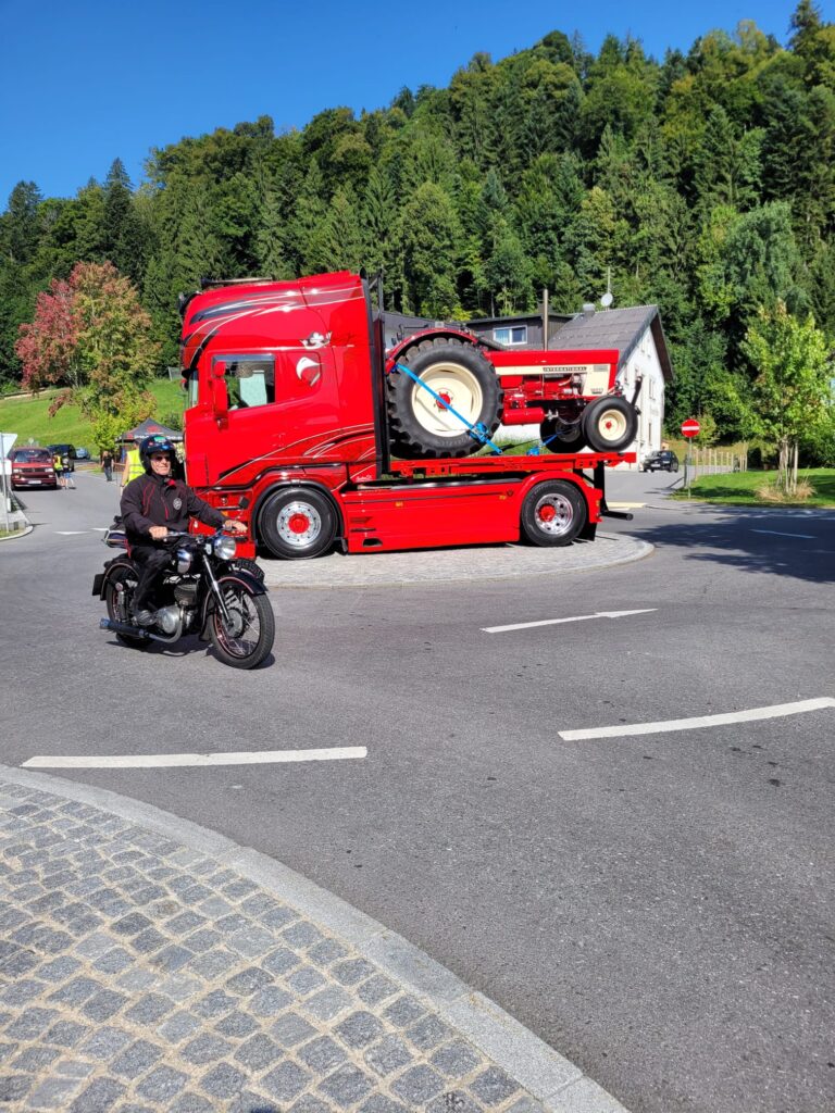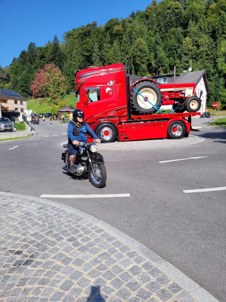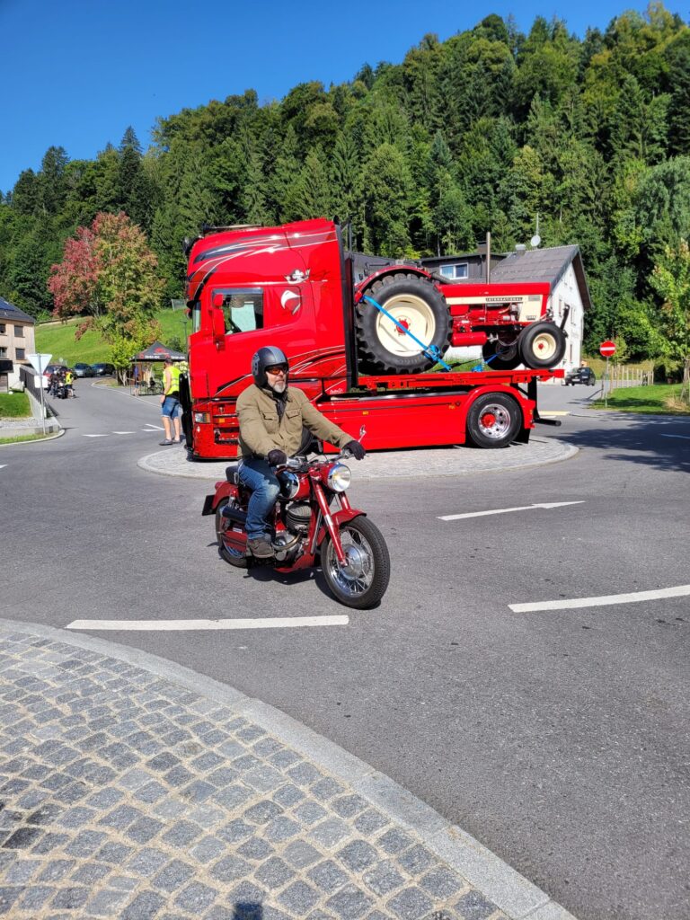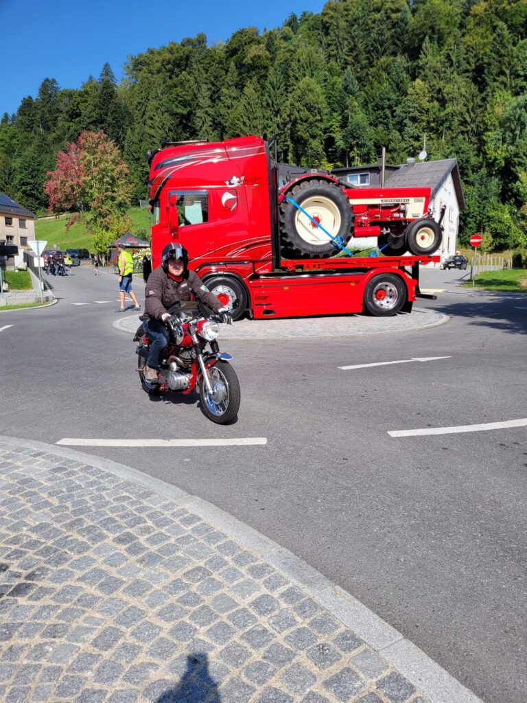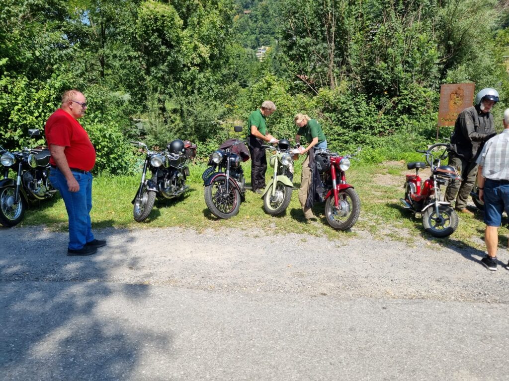 Doch schon beim Anstieg in Möggers wollte sich die Puch von Günter G. einfach nicht mehr schalten lassen. Trotz sofort eingeleiteter Notfallmaßnahme und mehreren First-Responders kam jede Hilfe zu spät. Es nützte nichts mehr und Günter musste umkehren und irgendwie die Puch ohne Schaltung in die Garage von Puchfreund Wurzi zurückbringen.