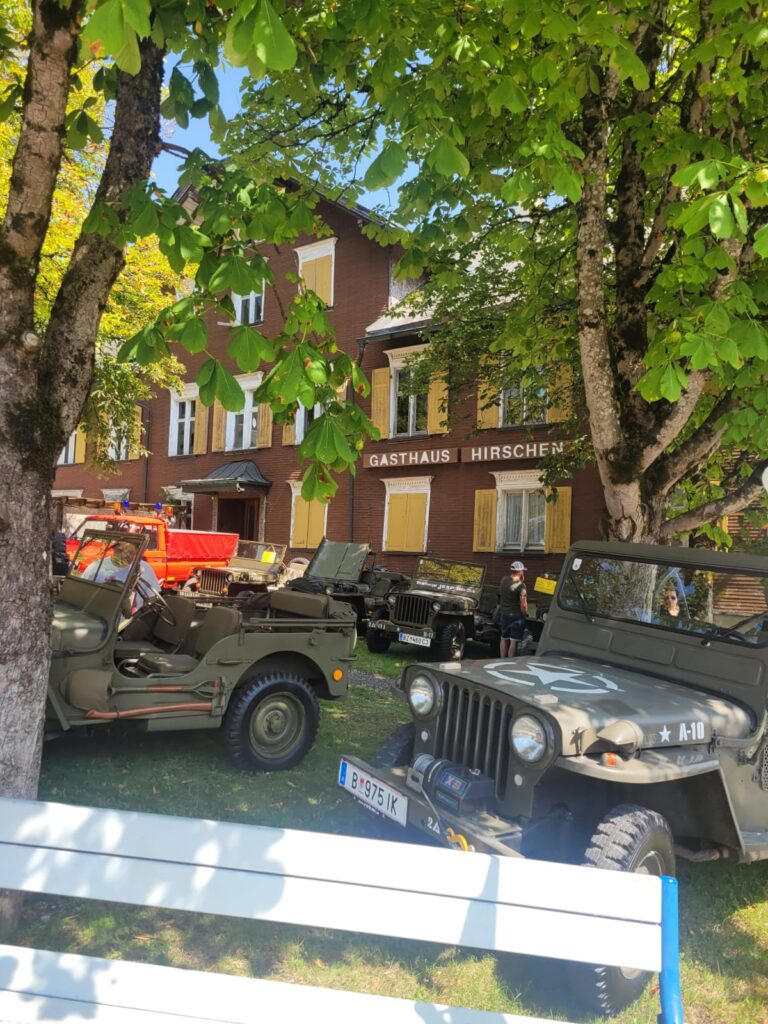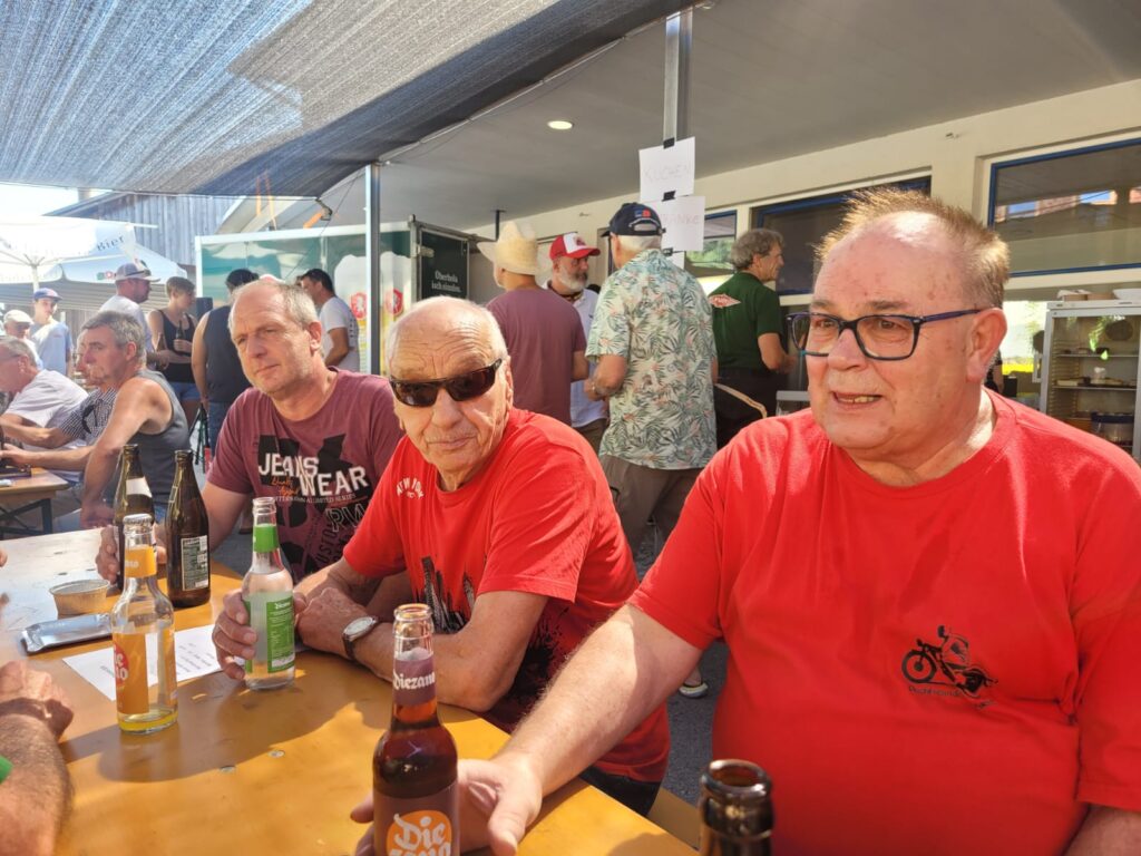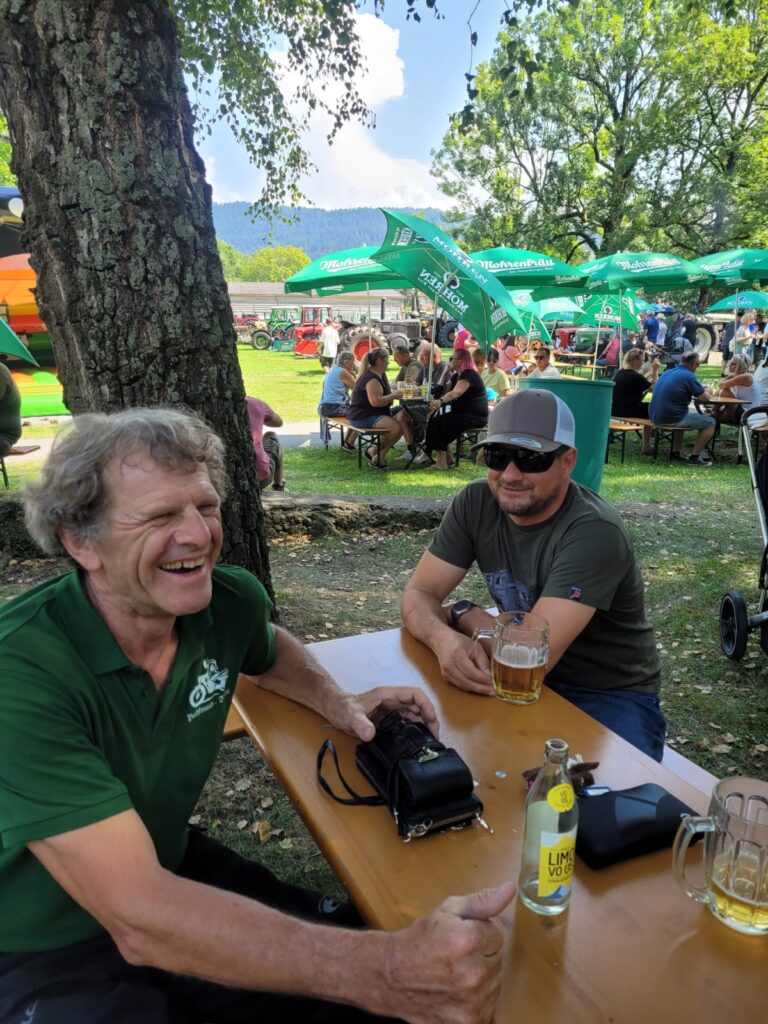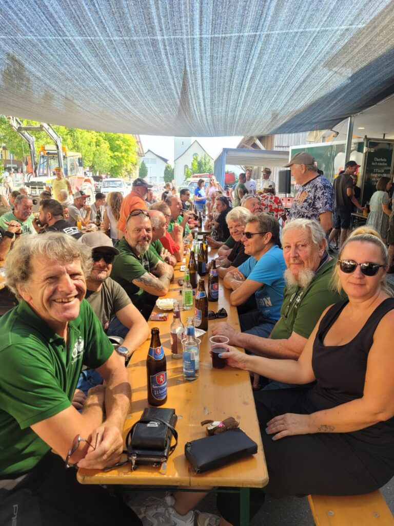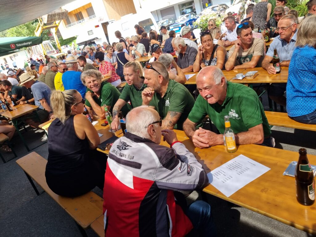 In Langen wartete Andi mit seinem Pinzgauer schon auf seine Puchfreunde. Und so genossen wir alle bei strahlendem Wetter und der wunderbaren Atmosphäre mit der tollen Organisation den Frühschoppen in Langen. Ein paar Puchfreunde entschlossen sich kurzerhand, noch zum Ächler Sommerfest in Wolfurt zu fahren. Dort warteten eine tolle Stimmung, interessante Oldtimer und eine unterhaltsame Musik auf die Puchfreunde.