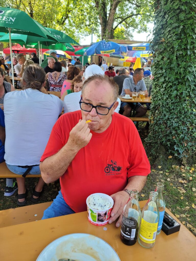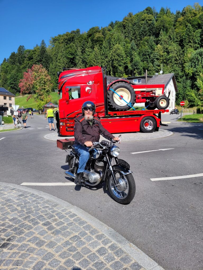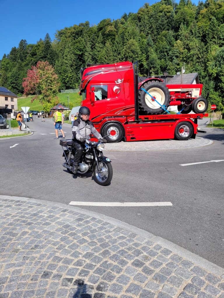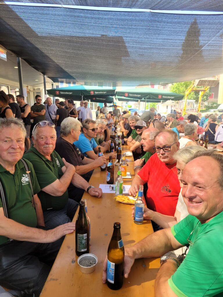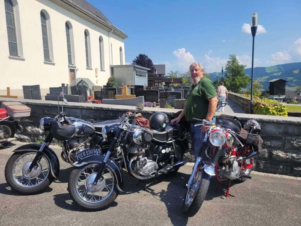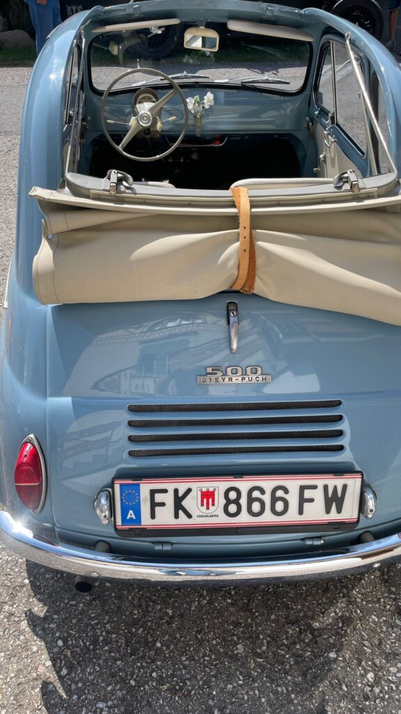 In Langen wartete Andi mit seinem Pinzgauer schon auf seine Puchfreunde. Und so genossen wir alle bei strahlendem Wetter und der wunderbaren Atmosphäre mit der tollen Organisation den Frühschoppen in Langen. Ein paar Puchfreunde entschlossen sich kurzerhand, noch zum Ächler Sommerfest in Wolfurt zu fahren. Dort warteten eine tolle Stimmung, interessante Oldtimer und eine unterhaltsame Musik auf die Puchfreunde.