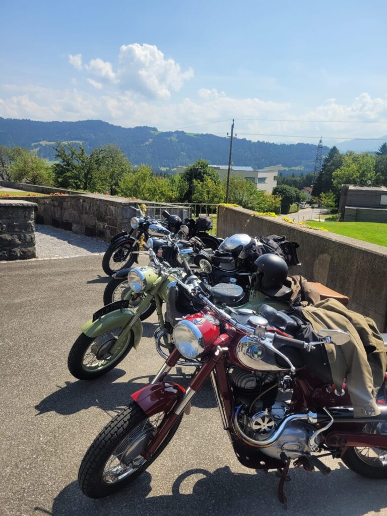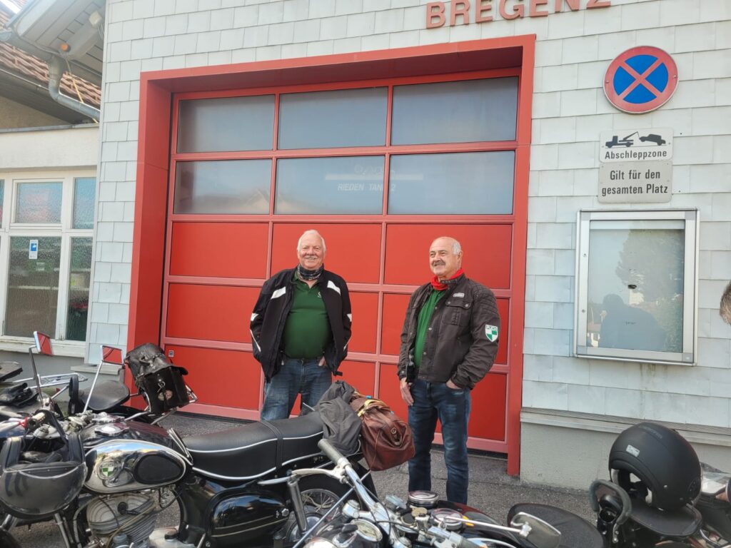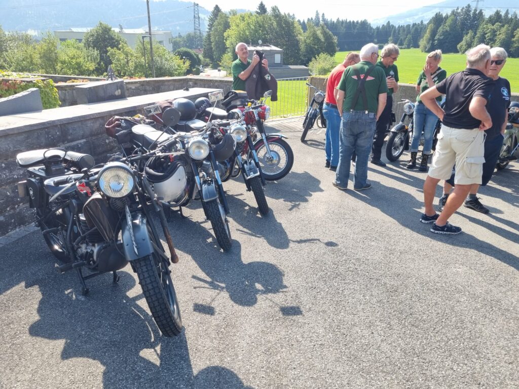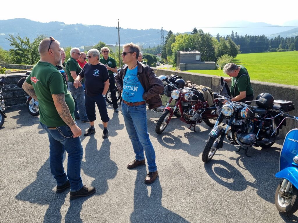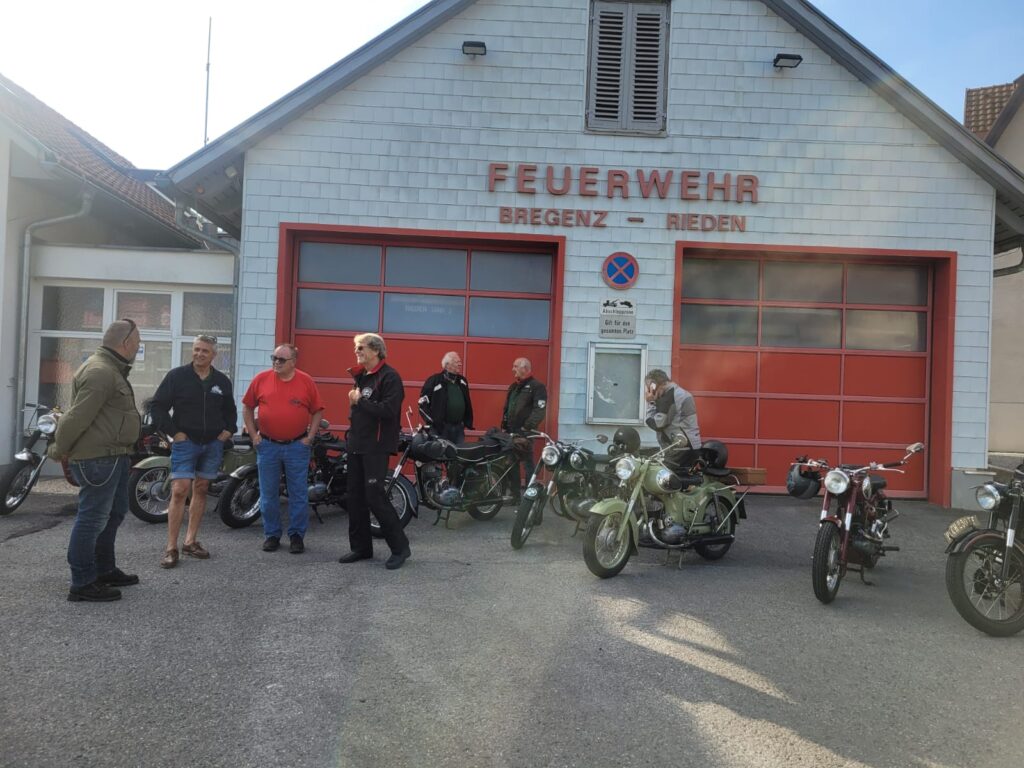 Am Freitag, den 15. August um 9.00 Uhr trafen sich 9 Puchfreunde beim Feuerwehrhaus in Rieden. Kurz danach kamen beim Feuerwehrhaus in Lochau noch zwei weitere Puchfreunde dazu. Voller Vorfreude auf den Frühschoppen beim Oldtimertreffen in Langen bei Bregenz begann die Fahrt. Geplant war, dass wir über den Pfänderstock nach Langen fahren.